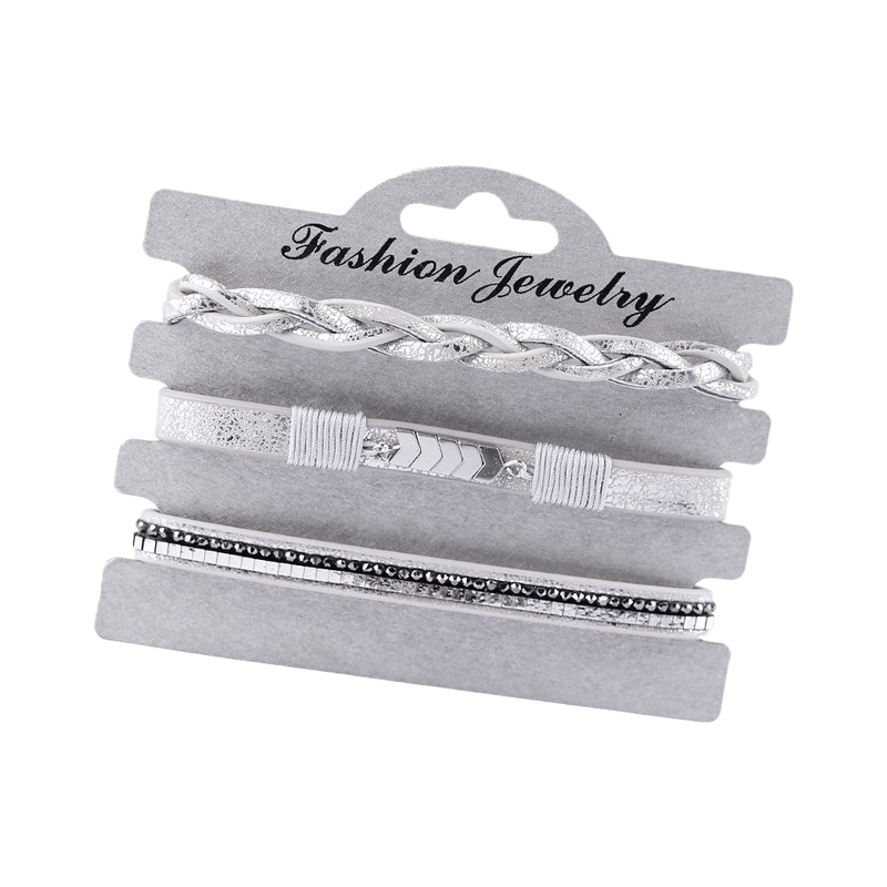 Set 3 bratari piele ecologica 21.5 cm, Argintiu metalic Set 3 bratari piele ecologica 21.5 cm, Argintiu metalic
