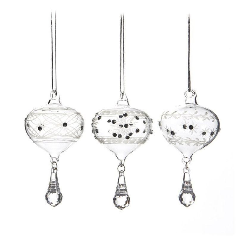 Set 3 globuri brad Craciun cu pietre, 5 cm, transparent Set 3 globuri brad Craciun cu pietre, 5 cm, transparent
