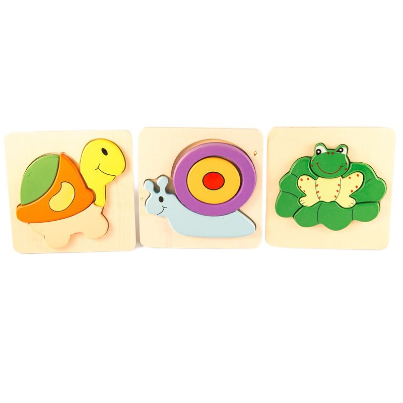 Jucarii, Copii si BebeJucarii si jocuriJocuri si puzzlePuzzleSet 3 ​Puzzle din lemn, animalute, 7Toys