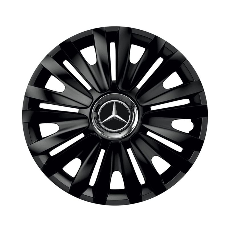Set 4 capace roti negre cu inel Cromat Royal pentru gama auto Mercedes-Benz, R16 Set 4 capace roti negre cu inel Cromat Royal pentru gama auto Mercedes-Benz, R16