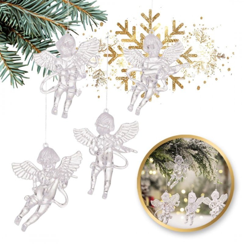 Set 4 figurine de Craciun, ingerasi pentru brad, 9x7 cm, JollyMag, KSN165 Set 4 figurine de Craciun, ingerasi pentru brad, 9x7 cm, JollyMag, KSN165