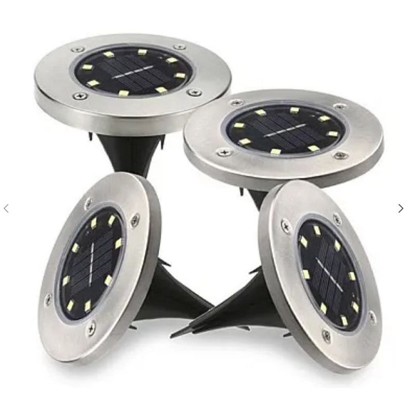 Set 4 Lampi Solare METALICE Disk Lights Argintii pentru Gradina