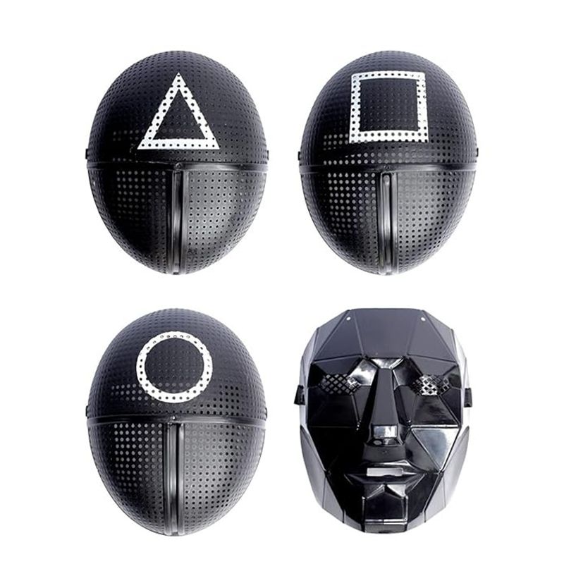 Set 4 masti KidMania® Squid Game – Cerc, Patrat, Triunghi, Lider, marime universala One Size Set 4 masti KidMania® Squid Game – Cerc, Patrat, Triunghi, Lider, marime universala One Size