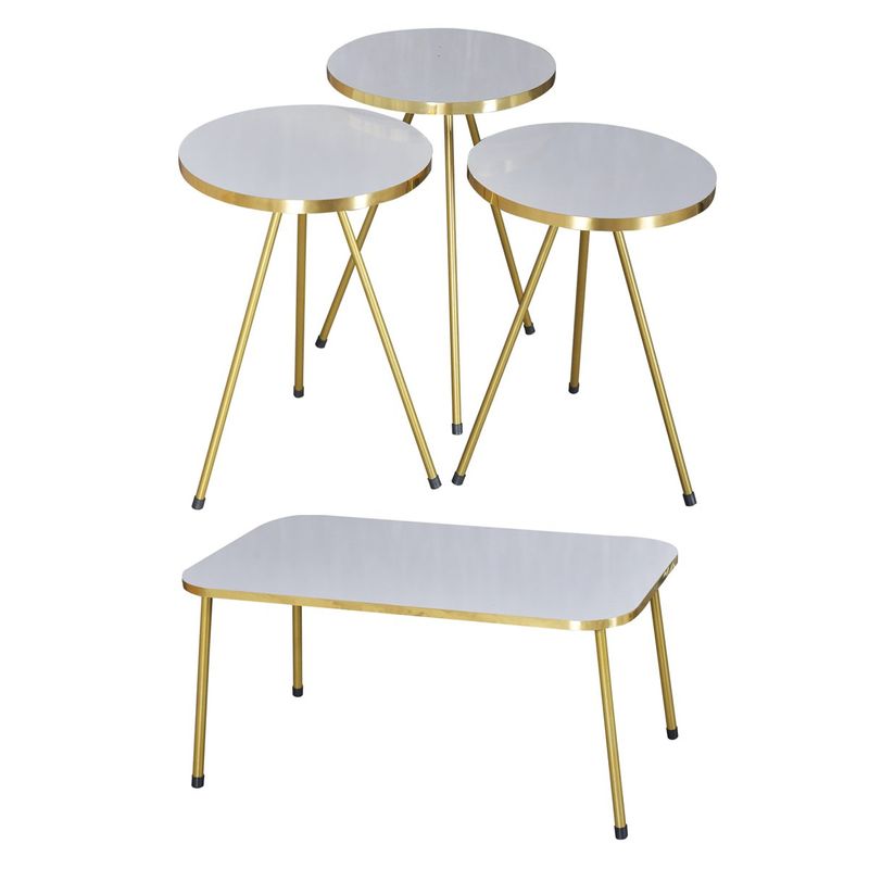Set 4 masute cafea Zigon, pal, alb lucios, EHA Set 4 masute cafea Zigon, pal, alb lucios, EHA