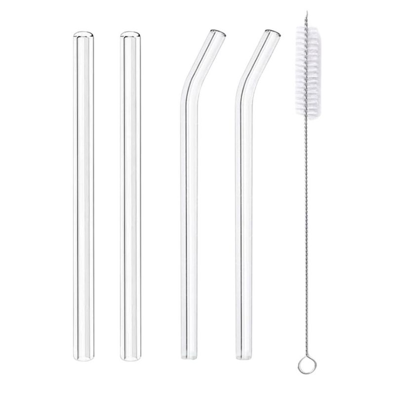 Set 4 paie din sticla borosilicata cu periuta de curatare, transparente, eCarla, AB02 Set 4 paie din sticla borosilicata cu periuta de curatare, transparente, eCarla, AB02