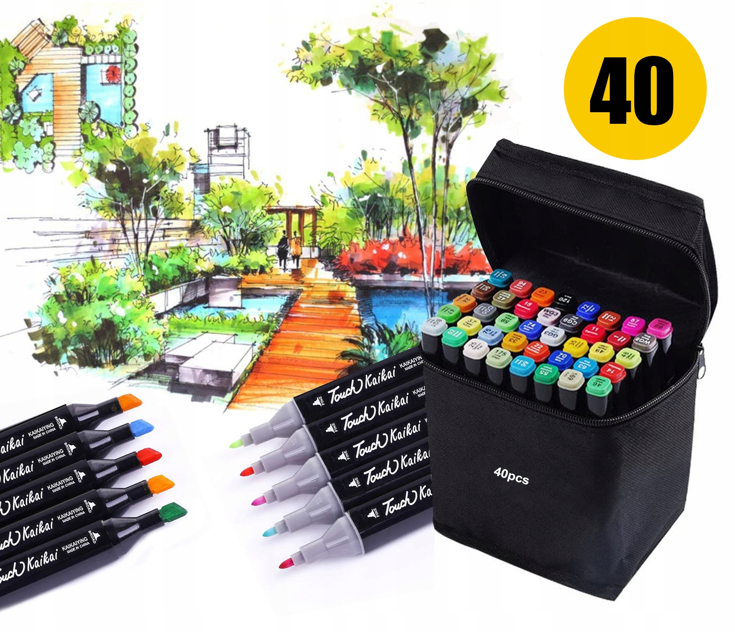 40 Markere de arta permanente cu doua capete de calitate artist profesional. Include toate nuantele de culoare primare si secundare de care artistii au nevoie pentru desen, scriere, schita, ilustrare, umbrire, proiectare, randare, manga, anime, carti de colorat pentru adulti si multe altele. Perfect pentru a fi folosit pe hartie, ceramica, sticla, lemn, tesatura si multe altele.