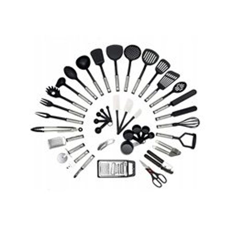 Set 40 ustensile de bucatarie, otel/nailon, negru Set 40 ustensile de bucatarie, otel/nailon, negru