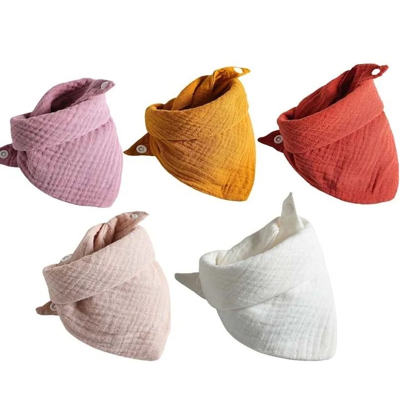 Set 5 bavete din muselina REDQUIT®, cu capse, multicolor Set 5 bavete din muselina REDQUIT®, cu capse, multicolor