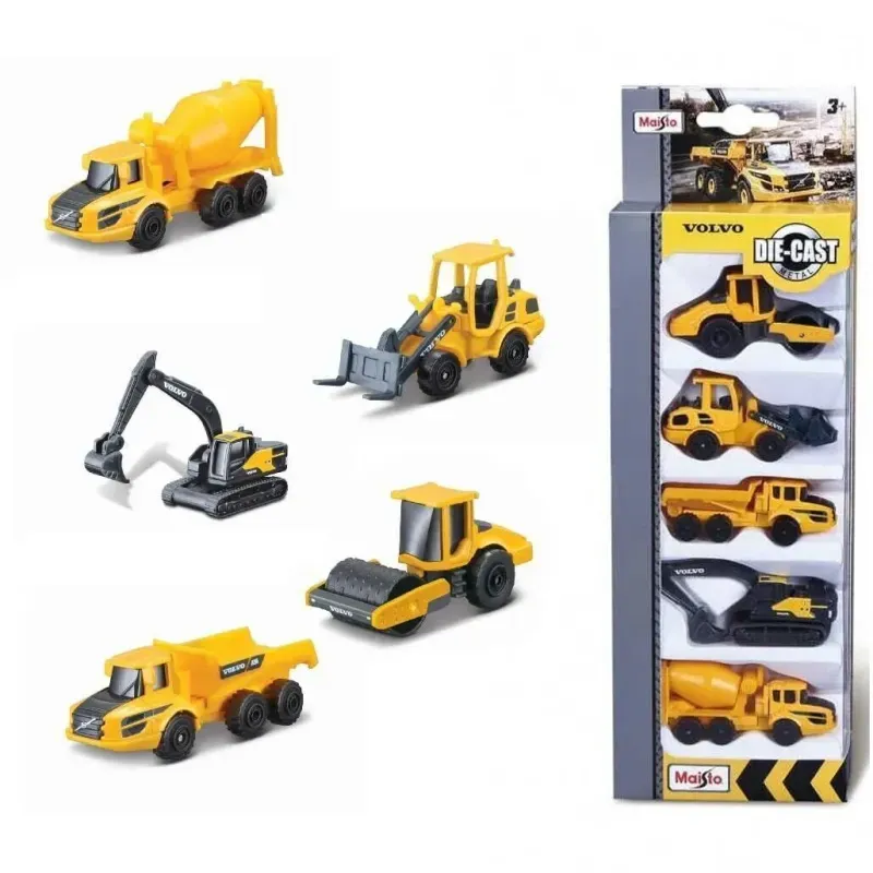 Acest set contine 5 mini vehicule de constructie Volvo, ideale pentru joaca si colectionare. Vehiculele sunt realizate din metal turnat sub presiune (die-cast), cu componente din plastic, oferind un echilibru intre durabilitate si detalii realiste. Vehiculele sunt vopsite in culorile galben si gri specifice marcii Volvo, oferind un aspect autentic. Fiecare vehicul are parti mobile, adaugand un plus de realism si interactivitate in timpul jocului. Rotile vehiculelor se rotesc liber, permitand deplasarea usoara pe diverse suprafete. Setul stimuleaza imaginatia si creativitatea copiilor, permitandu-le sa creeze scenarii de constructie realiste. Setul este o alegere excelenta pentru copiii pasionati de vehicule de constructie si pentru colectionari, oferind calitate, detalii realiste si o experienta de joc interactiva.