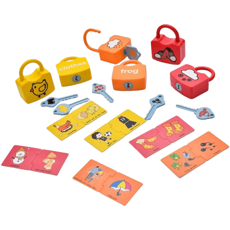 Jucarii, Copii si BebeJucarii si jocuriJucarii & jocuri educativeJucarii interactiveSet 6 Lacate, 6 chei, cartonase de asociere imagini diverse, Broscuta, Norisori, Cuvinte, 18 piese, 3 ani +, Edujucarii