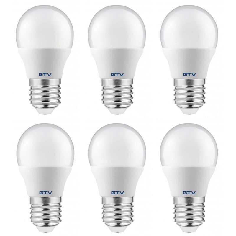 Set 6 becuri led sferice E27, 8W (54 W), 700 lm, lumina calda, GTV Set 6 becuri led sferice E27, 8W (54 W), 700 lm, lumina calda, GTV