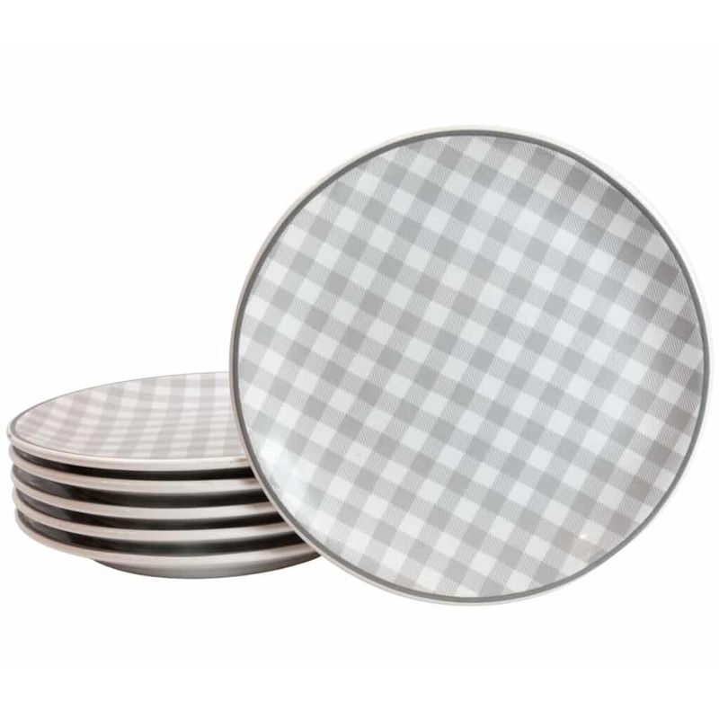 Set 6 farfurii desert Alb Pur decorat cu model carouri gri Set 6 farfurii desert Alb Pur decorat cu model carouri gri