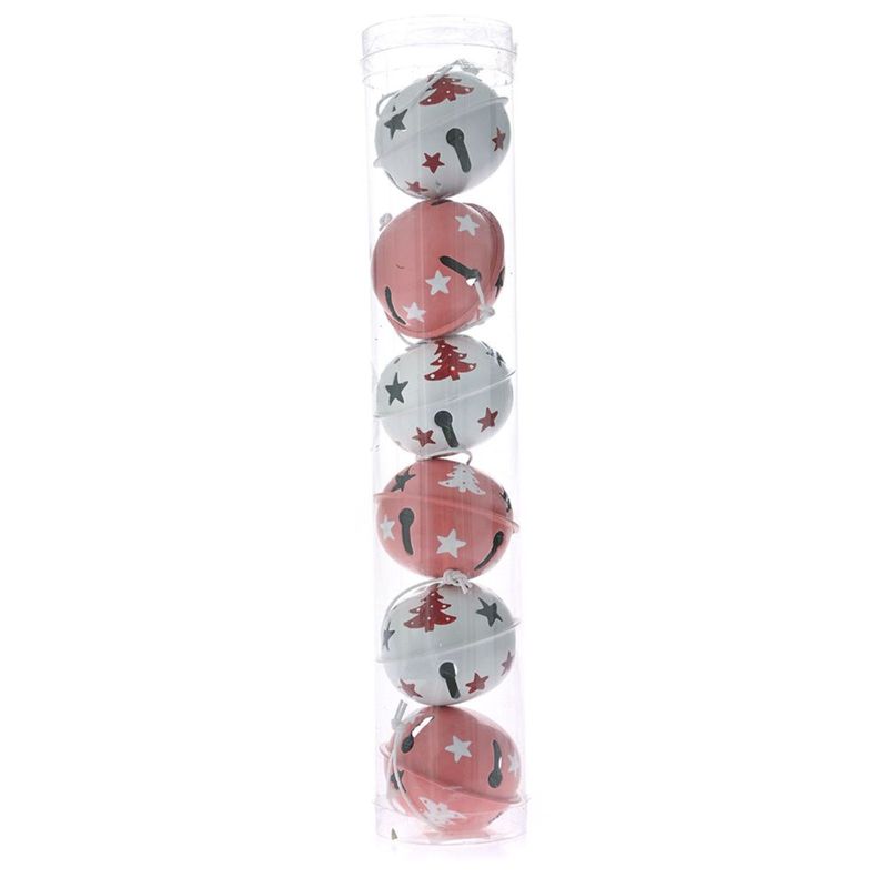 Set 6 globuri brad cu clopotei decorativi pentru Craciun, 5 cm, metal, multicolor Set 6 globuri brad cu clopotei decorativi pentru Craciun, 5 cm, metal, multicolor