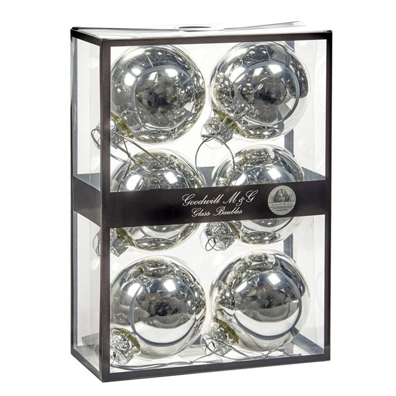 Set 6 globuri brad Shiny Silver, sticla, 7 cm Set 6 globuri brad Shiny Silver, sticla, 7 cm