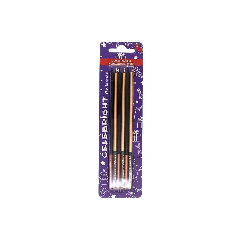 Set 6 lumanari, Celebright, negru-maro sclipicos, mesaj Happy Birthday pe baza, 15 cm Set 6 lumanari, Celebright, negru-maro sclipicos, mesaj Happy Birthday pe baza, 15 cm