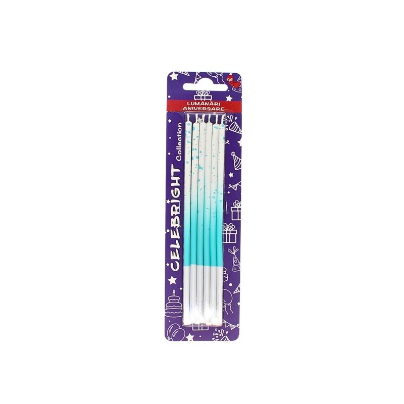 Set 6 lumanari, Celebright, turcoaz, degrade cu picatele, 15 cm Set 6 lumanari, Celebright, turcoaz, degrade cu picatele, 15 cm