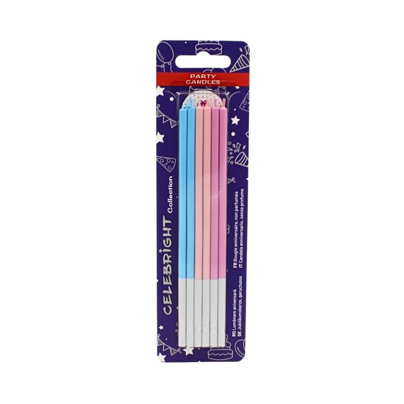 Set 6 lumanari drepte, pentru tort, Celebright, nuante pastel roz si albastru, baza alba, 15 cm Set 6 lumanari drepte, pentru tort, Celebright, nuante pastel roz si albastru, baza alba, 15 cm