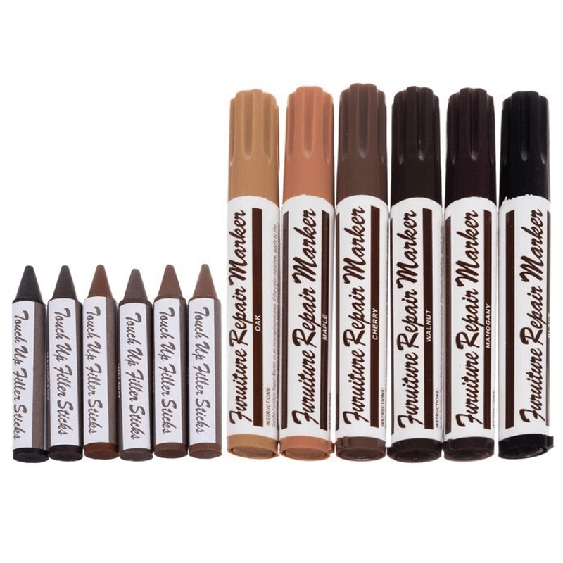 Set 6 Markere Permanente si 6 Creioane Cerate pentru Corectie Zgarieturi Mobila si Lemn Set 6 Markere Permanente si 6 Creioane Cerate pentru Corectie Zgarieturi Mobila si Lemn