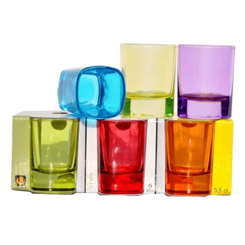 Set 6 pahare colorate din sticla pentru shoturi, 55 ml Set 6 pahare colorate din sticla pentru shoturi, 55 ml