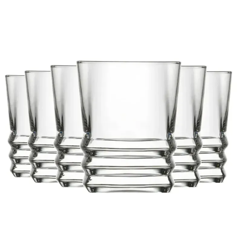 Fabricate din sticla groasa si clara, cu detalii decorative in relief, fiecare pahar ofera o experienta placuta la servire si un aspect sofisticat. Baza stabila si forma ergonomica asigura confort si siguranta, iar designul uniform al setului contribuie la un decor armonios si elegant.