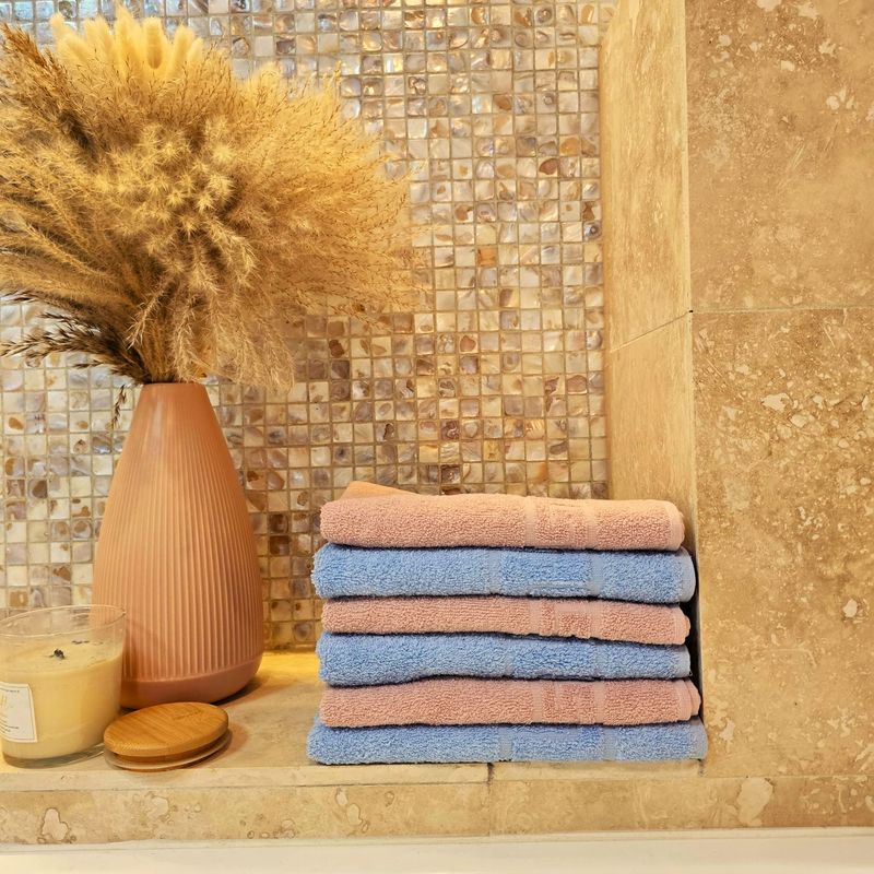 Set 6 prosoape pentru maini Kotonia Home- Greek Border, 30x50 cm, 100% Bumbac, bleu si roz ars Set 6 prosoape pentru maini Kotonia Home- Greek Border, 30x50 cm, 100% Bumbac, bleu si roz ars