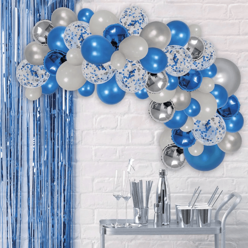 Set 70 Baloane pentru Arcada Albastru Alb si Argintiu cu Confetti G Glixicom® Set 70 Baloane pentru Arcada Albastru Alb si Argintiu cu Confetti G Glixicom®