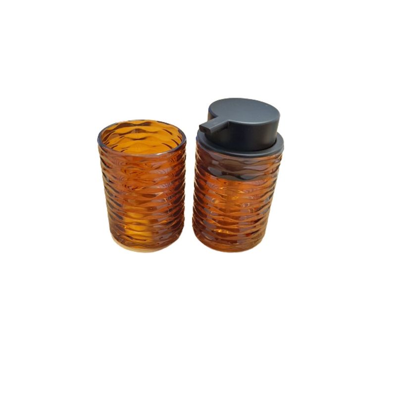 Set accesorii baie, suport periute si dispenser sapun, Sticla, Maro degrade, 240 ml Set accesorii baie, suport periute si dispenser sapun, Sticla, Maro degrade, 240 ml