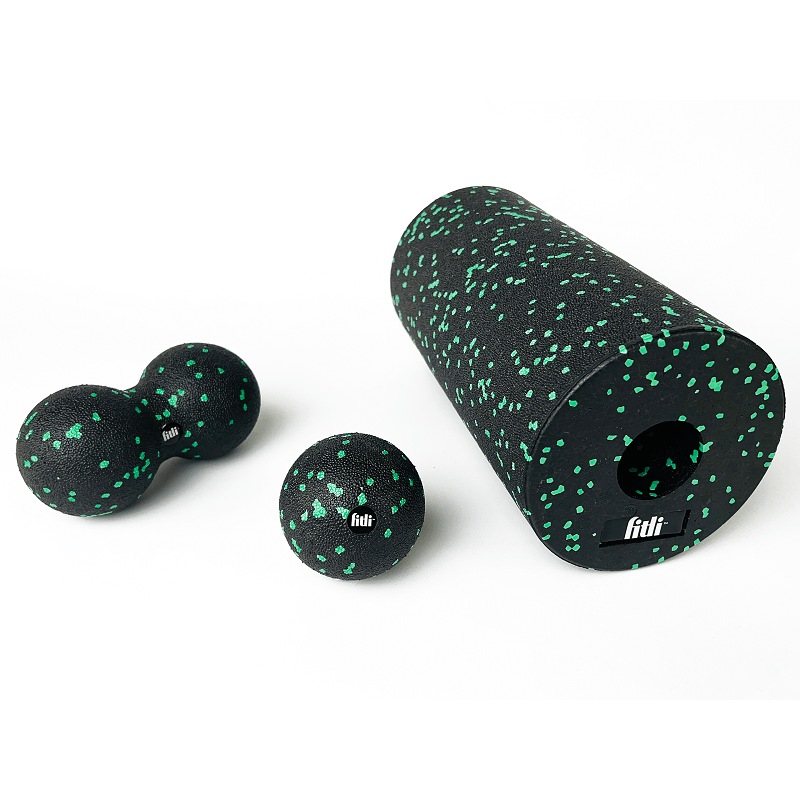 Set accesorii pentru masaj cu rola si mingii, Fitli, Verde Traiesti in tensiune si stres constant, ai rani frecvente dupa antrenament sau poate ai nevoie de ajutor de la un kinetoterapeut?