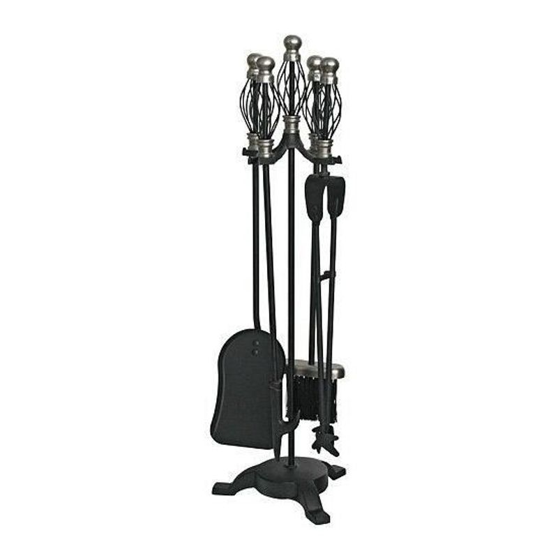Set accesorii semineu, suport cu 4 piese, nichelate, 66 cm Set accesorii semineu, suport cu 4 piese, nichelate, 66 cm