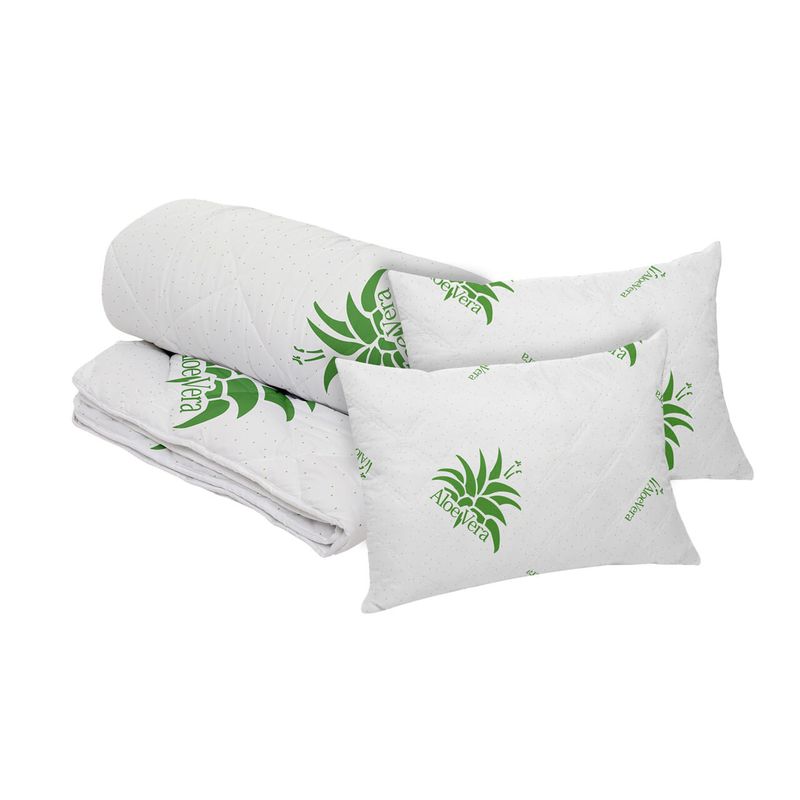 Set Aloe Vera Essence, 2 perne microfibra 50x70 cm si pilota matlasata 350g/mp, 200x220 cm Set Aloe Vera Essence, 2 perne microfibra 50x70 cm si pilota matlasata 350g/mp, 200x220 cm
