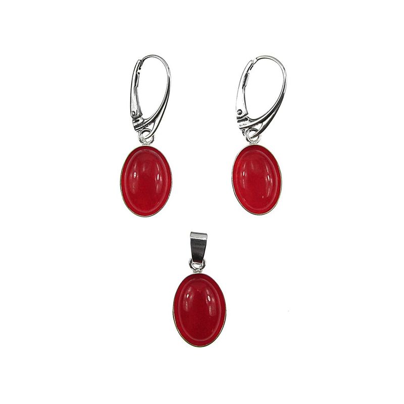 Set argint cu agate rosii ovale 14x10 MM Set argint cu agate rosii ovale 14x10 MM