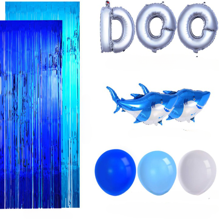 Setul tematic cu Baby Shark este perfect pentru a decora petrecerea copiilor.
