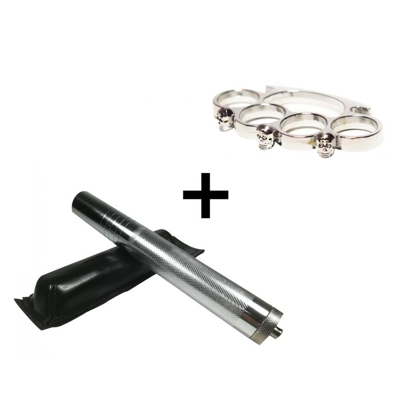 Set baston telescopic din otel, argintiu, 64 cm + box craniu argintiu Set baston telescopic din otel, argintiu, 64 cm + box craniu argintiu