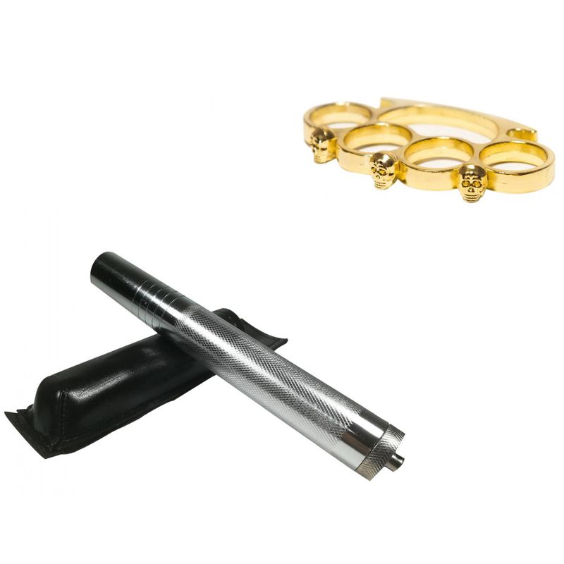 Set baston telescopic din otel, argintiu, 64 cm si box craniu auriu Set baston telescopic din otel, argintiu, 64 cm si box craniu auriu