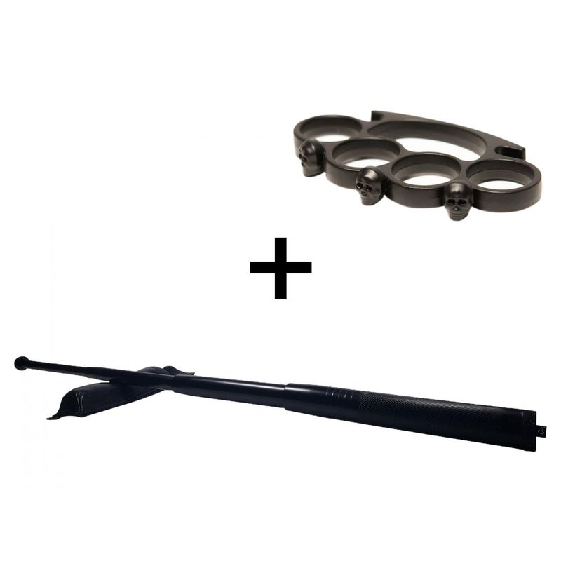 Set baston telescopic din otel, negru, 64 cm + box craniu negru Set baston telescopic din otel, negru, 64 cm + box craniu negru