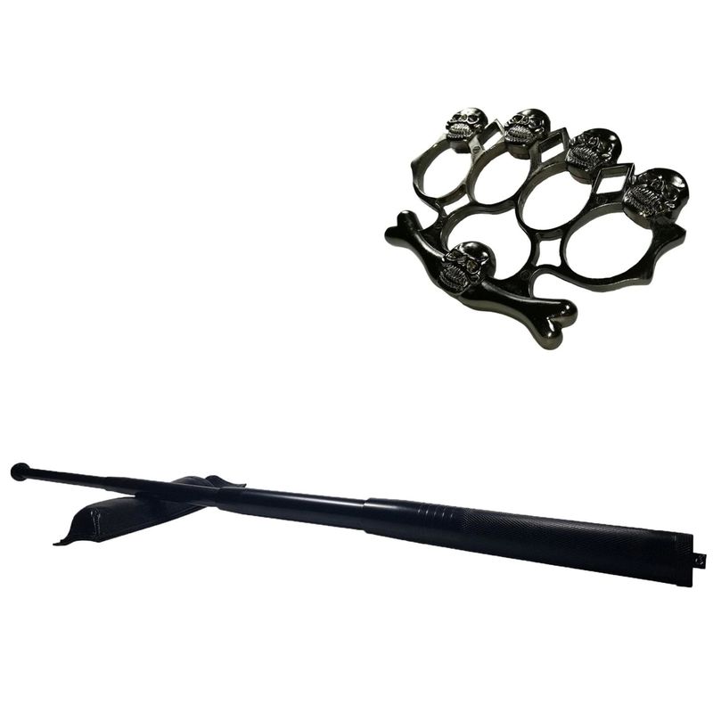 Set baston telescopic din otel, negru, 64 cm + box-rozeta craniu negru Set baston telescopic din otel, negru, 64 cm + box-rozeta craniu negru