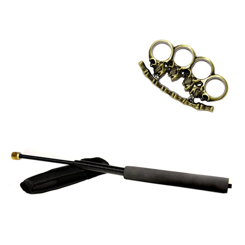 - baston extensibil; - material: otel ;Baston telescopic pentru autoparare, alcatuit din patru elementi de otel, care se extind usor si se strang usor, cu sistem de inchidere magnetica. Baston telescopic flexibil de autoaparare, poate avea loc in buzunar, prinsa la curea, sau in portiera de la masina economisand astfel spatiul, usor si la indemana. Este format din 3 segmente care se extind. Specificatii: - baston extensibil - material: otel - dimensiune desfasurat: 57 cm - dimensiuni strans 20 cm - diametru 2.5 cm - culoare: Negru - manerul este acoperit cu burete - husa pentru prindere la curea; Rozeta - Box - Pumnal autoaparare Dimesiuni: Lungime 12 cm Latime 7 cm Grosimea 1 cm Rozeta pentru protectia pumnului special construita pentru a fi usoara si rezistenta, nu iti rupe buzunarul cu greutatea ei si iti protejeaza oasele metacarpiene ale pumnului atunci cand esti pus in situatia sa alegi boxul ca mijloc de autoaparare. Este foarte utila mai ales atunci cand pumnii tai nu sunt suficient de antrenati si durizati la sacul de box. Boxul metalic este destinat apararii impotriva potentialilor agresori sau cainilor agresivi. Avertisment !!! Comercializam acest produs numai in scopurile enumerate mai sus. Nu raspundem de eventualele fapte antisociale realizate cu el. Va recomandam sa aveti un comportament responsabil pentru a nu intra sub incidenta legii ! - Dimensiune desfasurat: 47 cm; - dimensiuni strans 20 cm; - grosime 2.5 cm; - manerul este acoperit cu burete - husa pentru prindere la curea;