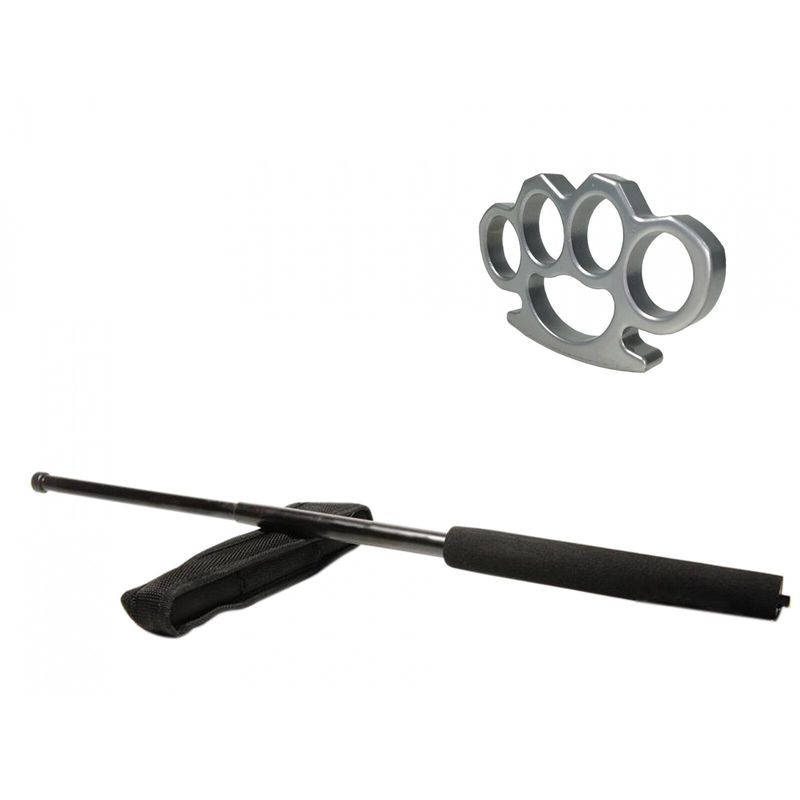 Set baston telescopic negru 50 cm + box argintiu 0.5 cm grosime Set baston telescopic negru 50 cm + box argintiu 0.5 cm grosime