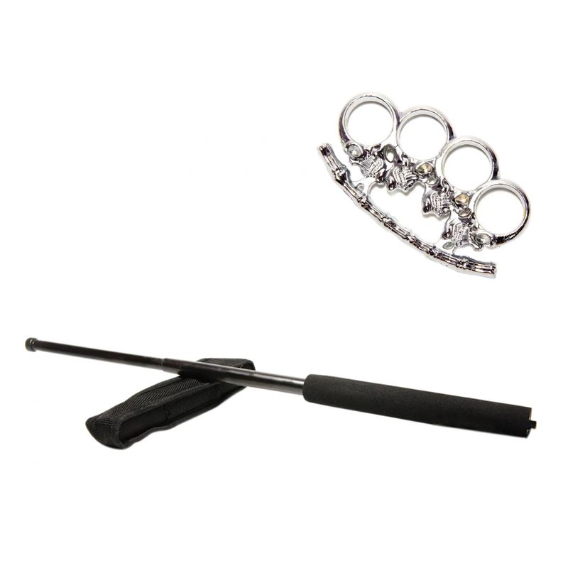 Set baston telescopic negru 50 cm + pumnal/box craniu argintiu Set baston telescopic negru 50 cm + pumnal/box craniu argintiu