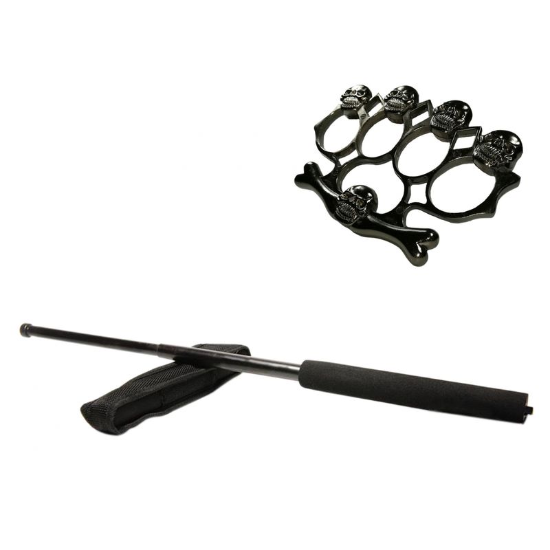 Set baston telescopic negru 50 cm + box,rozeta craniu negru Set baston telescopic negru 50 cm + box,rozeta craniu negru