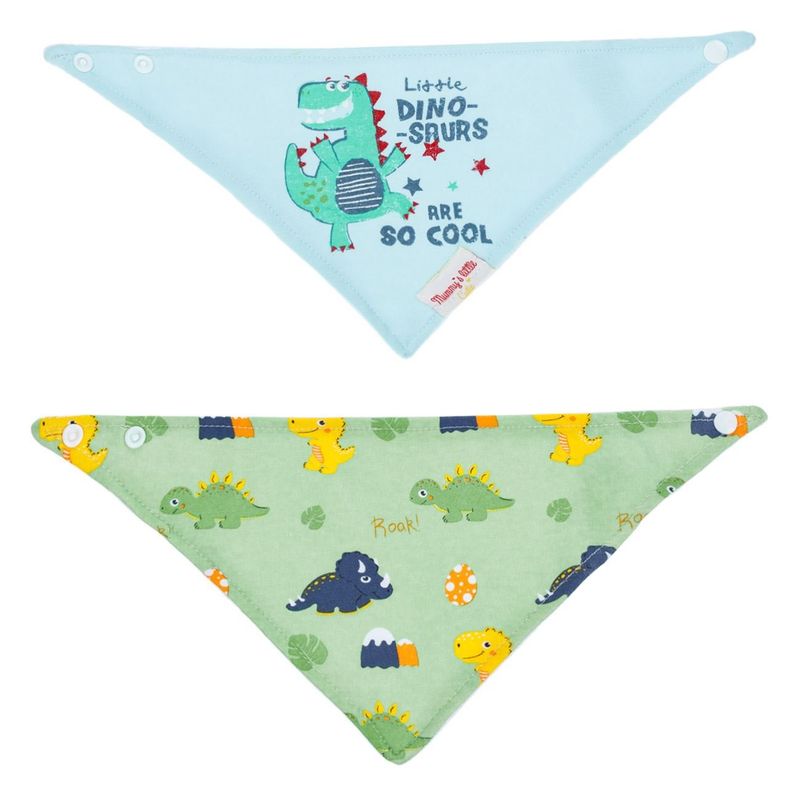 Set bavete esarfa, dinozauri, bumbac, bleu si verde, 2 bucati Set bavete esarfa, dinozauri, bumbac, bleu si verde, 2 bucati