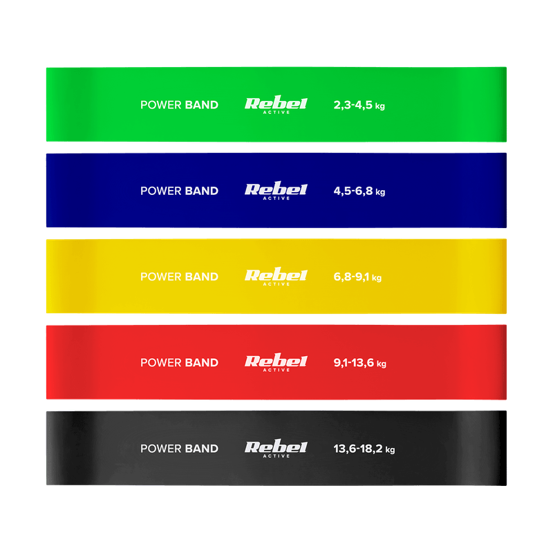Set benzi elastice lateks, 5 bucati, 60x5cm, 2.3-18.2 kg, multicolor Set benzi elastice lateks, 5 bucati, 60x5cm, 2.3-18.2 kg, multicolor