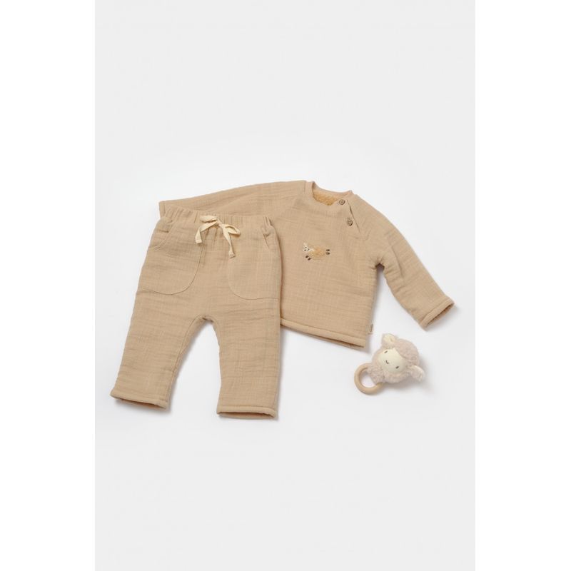 Set bluza dublata si pantaloni, Winter muselin, 100% bumbac - Apricot, BabyCosy Set bluza dublata si pantaloni, Winter muselin, 100% bumbac - Apricot, BabyCosy (Marime: 18-24 Luni)