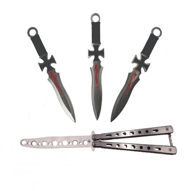 Set Briceag fluture si 3 Cutite de aruncat , IdeallStore® , Otel inoxidabil, Set Briceag fluture si 3 Cutite de aruncat , IdeallStore® , Otel inoxidabil,