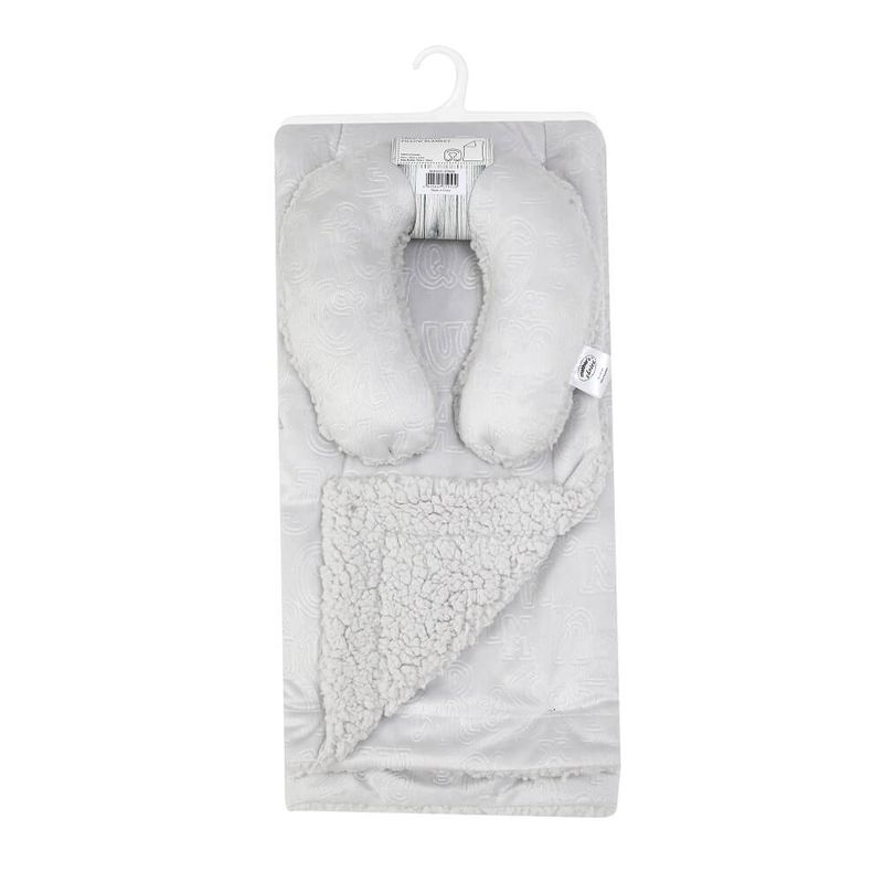 Set cadou bebelusi cu pernuta calatorie si paturica pufoasa gri Set cadou bebelusi cu pernuta calatorie si paturica pufoasa gri