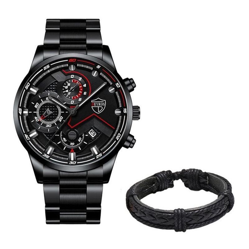 Set cadou cu ceas barbatesc Deyros Casual full negru si bratara eleganta Set cadou cu ceas barbatesc Deyros Casual full negru si bratara eleganta