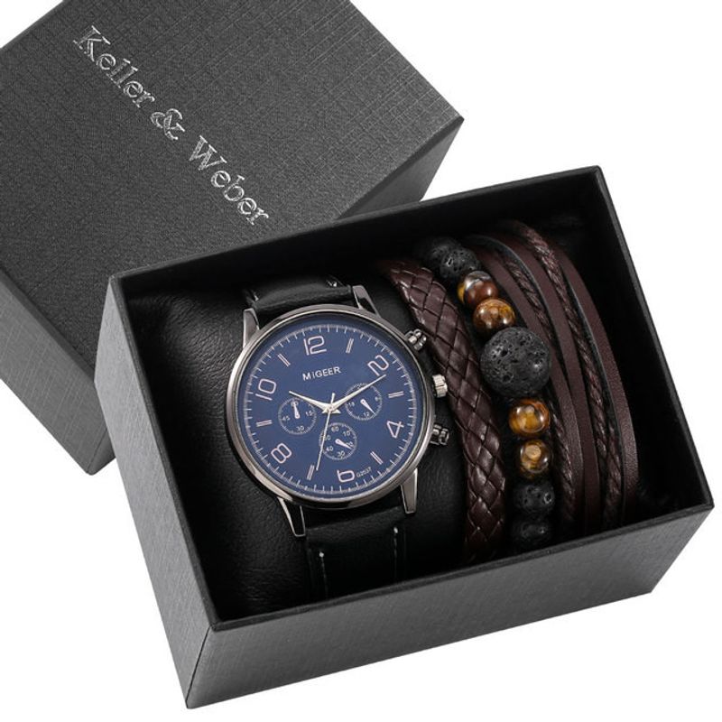 Caracteristici bratari: Culoare bratari: Negru/mar Doua bratari cu piele maro impletite O bratara cu margele din pietre naturale Lungimile usor de reglat Continut set: 1 x ceas 3 x bratara 1 x cutie Nota informativa !