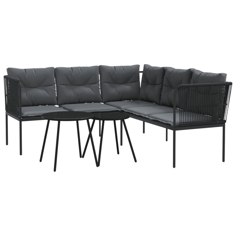 Set canapea de gradina cu perne, negru, otel si textilena Set canapea de gradina cu perne, negru, otel si textilena
