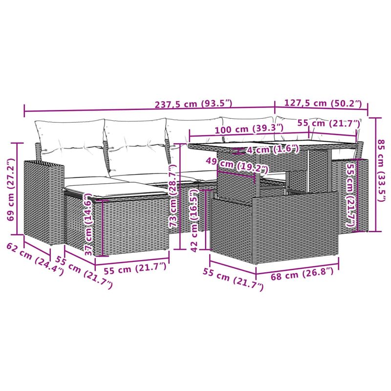 Set canapele de gradina cu perne, 7 piese, maro, poliratan Set canapele de gradina cu perne, 7 piese, maro, poliratan