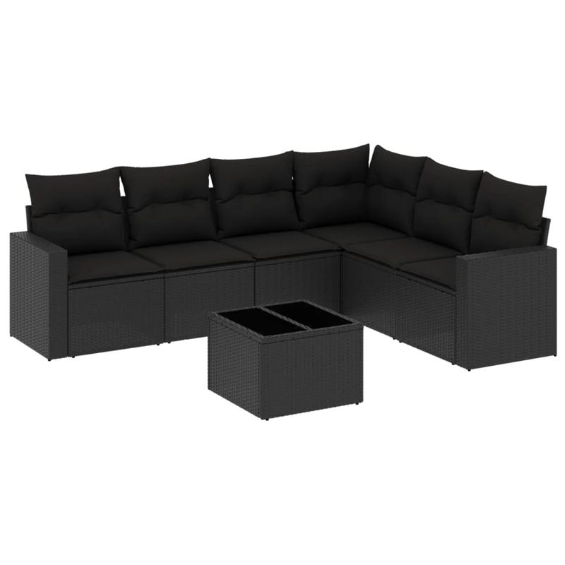 Casa si GradinaGradina si terasaMobilier exteriorCanapele si fotolii gradinaSet canapele de gradina cu perne, 7 piese, negru, poliratan